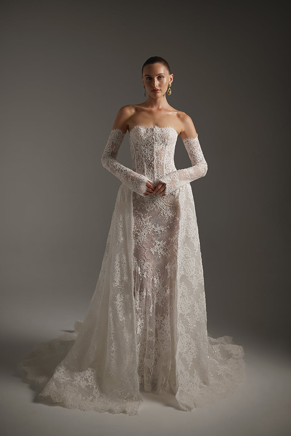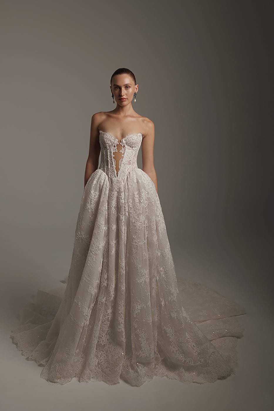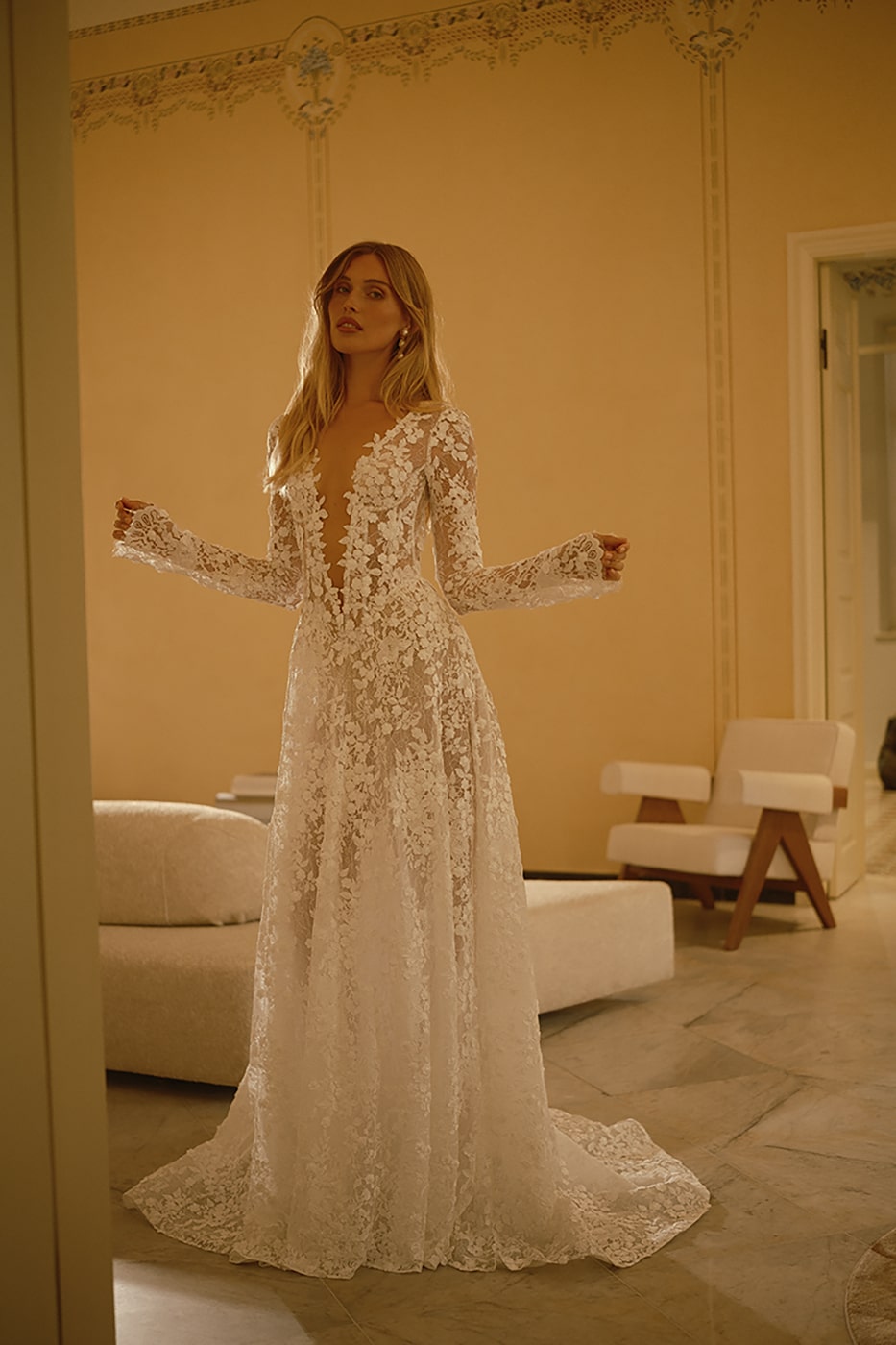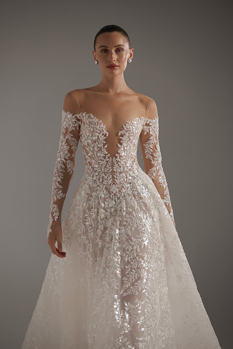 Fraiche, légère, excitante, la collection de robes de mariée de la maison Berta est une explosion de luxe et de sensualité. Décolletés plongeants, dentelles, transparence des tissus, broderies, amples jupes fendues mettant les jambes en valeur, brillance délicate et maîtrisée, toutes les robes sont imaginées pour sublimer les silhouettes des futures mariées.