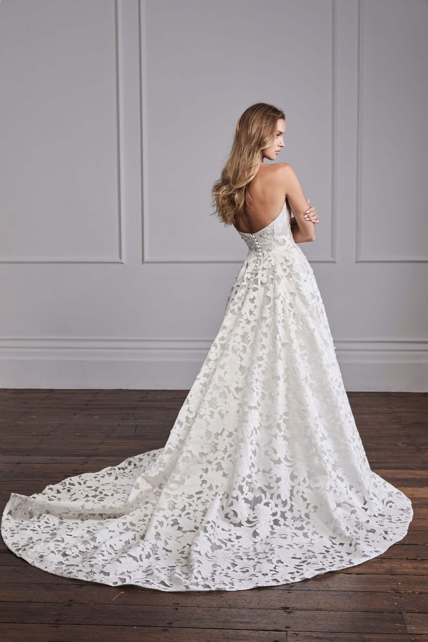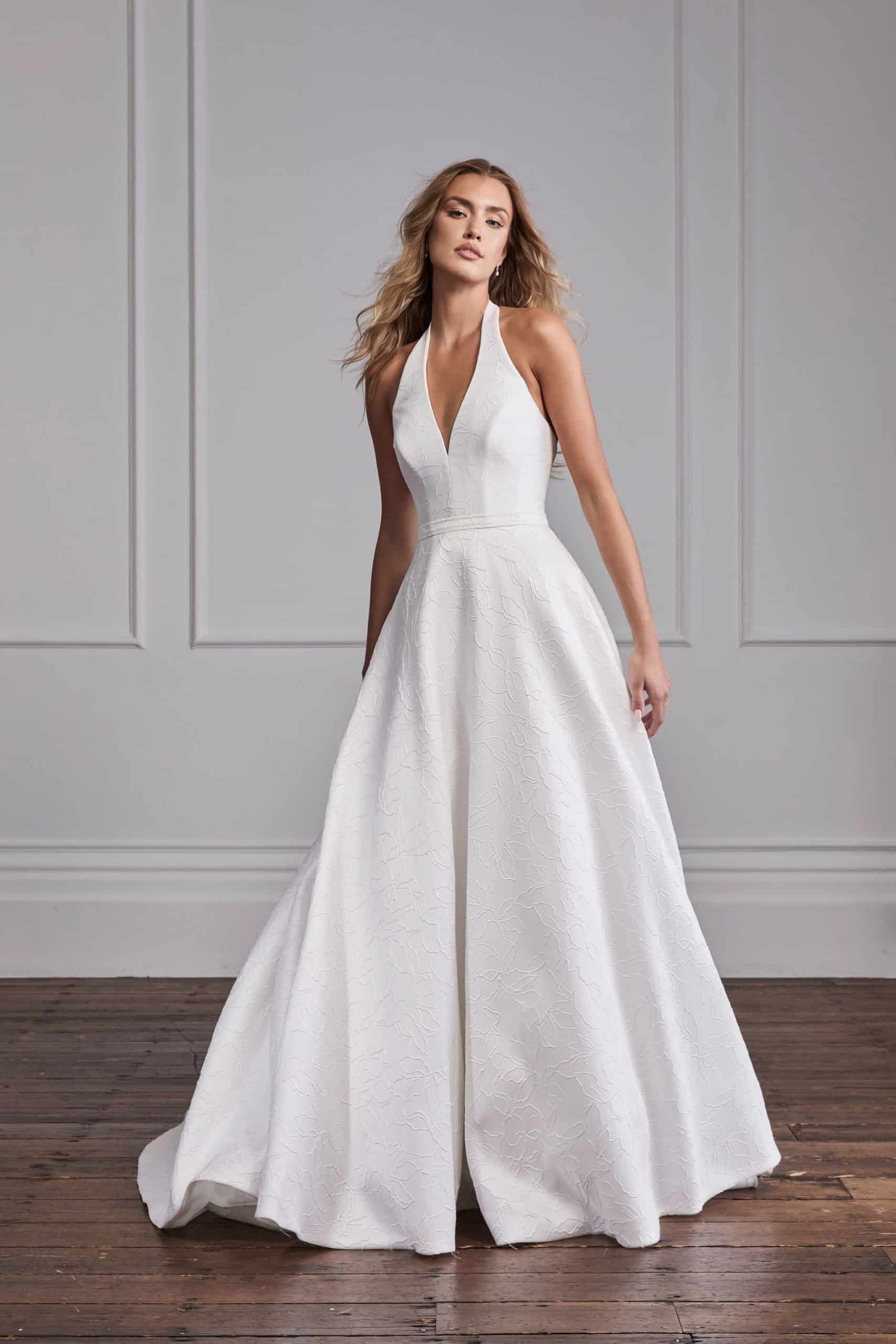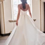 The collection incorporates the most incredible display of shapes, fabrics and creative design. With this year’s coming reminiscent of a decadent Royal parlor, the brand presents richly embroidered and expertly cut wedding dresses, with textured skirts and bodices with delicate detail and beading. Highlights include chic tailoring, hand painted pale blue and ivory satins.
